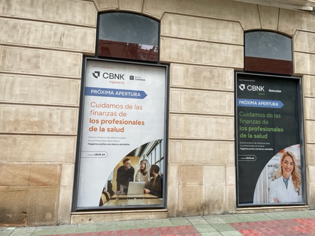 Rótulo Lona impresa con estructura bastidor y sistema de tensores
