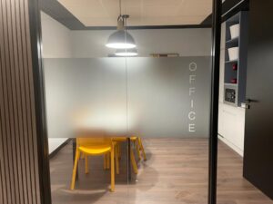 El vinilo al ácido o efecto traslúcido es un material que tiene muchas prestaciones y que es capaz de cambiar la apariencia de un espacio, indicado para oficinas, centros de trabajo, restaurantes y espacios que quieran conservar la luz natural pero quieran tener espacios con mayor privacidad. Este vinilo adhesivo y con un efecto de grabado en el cristal no te restará luz al local o oficina pero donde lo pongas no podrán verte, es un material idóneo para aplicar en cristales, para separar espacios en consultas médicas, salas de reuniones… Además con este vinilo podrás personalizar tu marca y sus aplicaciones corporativas ya que mediante el plotter podemos cortar todo tipo de textos, logotipos, vaciados…consigue un efecto muy corporativo con este material como complemento del resto de rótulos.